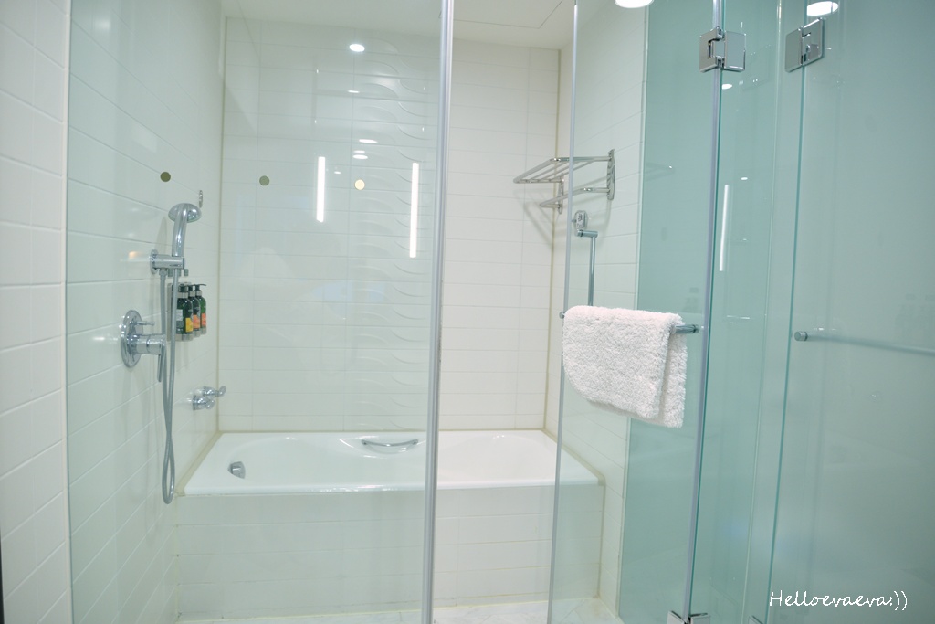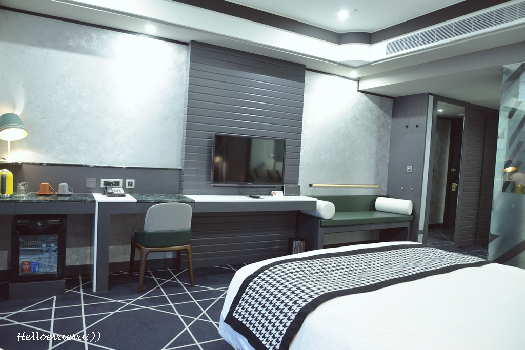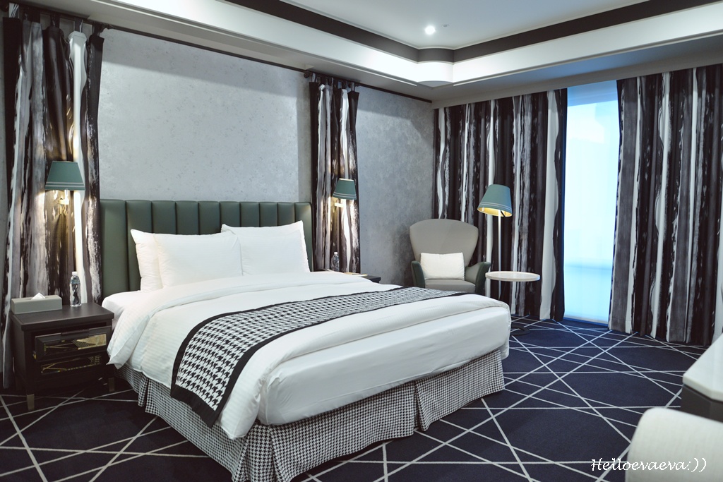 房間以簡約黑白色調為主,搭配線條感地毯,散發出現代風格,空間乾淨明亮,衛浴採乾濕分離設計,非常舒適!!!!床的尺寸寬大、軟硬適中,當晚睡得很好~