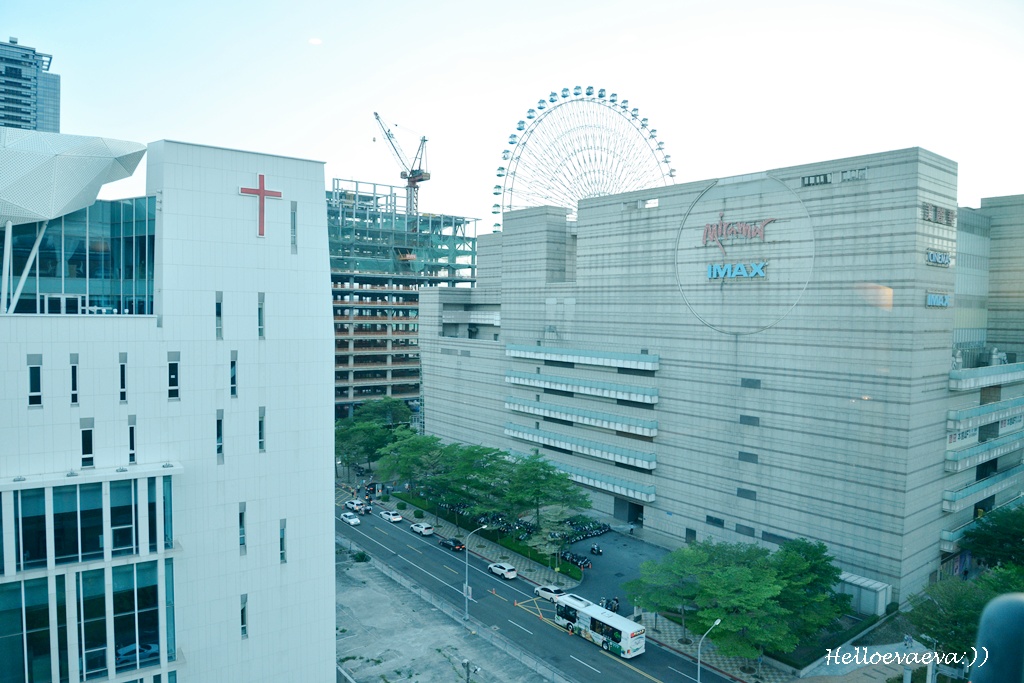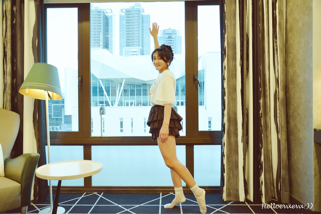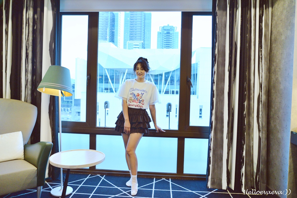 房間裡有一大片落地窗,光線灑進來的感覺特別舒服,我一進門就拉開窗簾往外望,沒想到居然能看到摩天輪~想到晚上摩天輪會亮起燈光,就覺得一定會很美。
