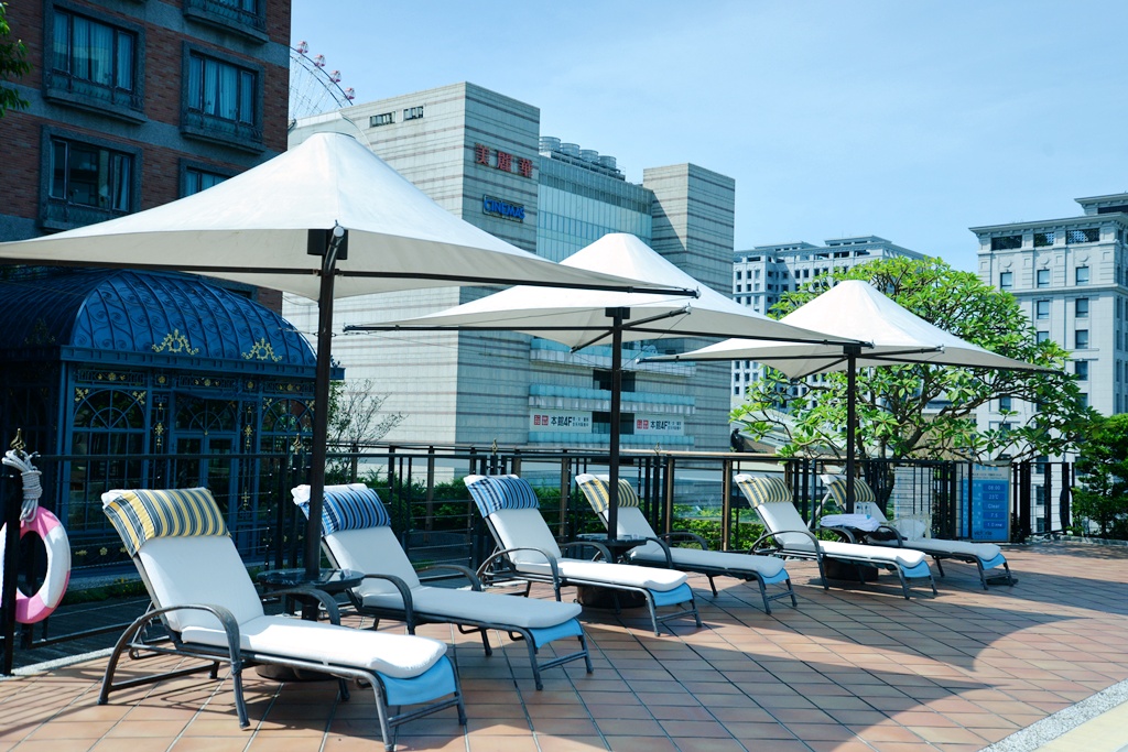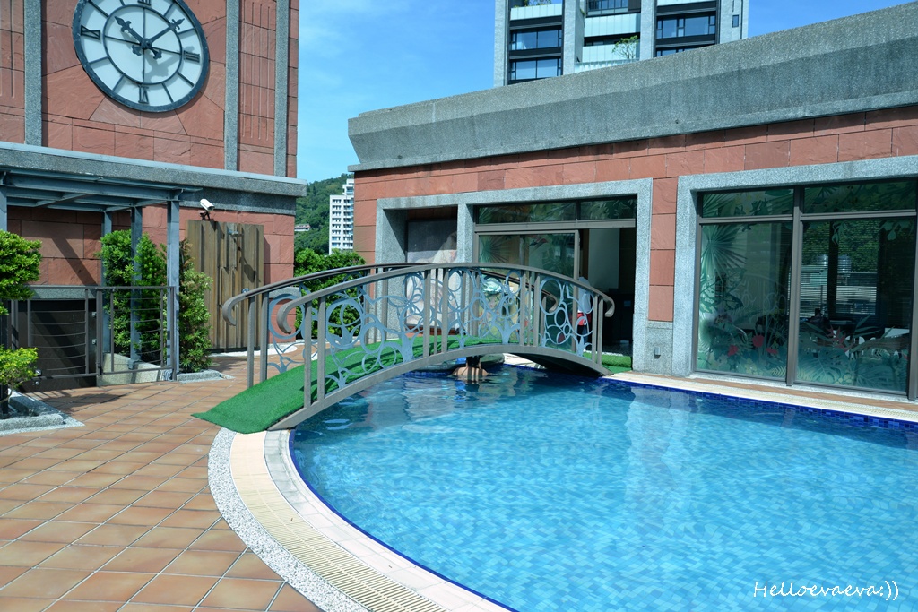 台北大直維多利亞酒店的戶外泳池真的太美了!一開始我還以為泳池是在室內,結果跟著指標走才發現居然是戶外,整個嚇到~可惜沒帶泳衣,不然一定想下去玩水,因為完全沒想到這裡竟然有泳池!